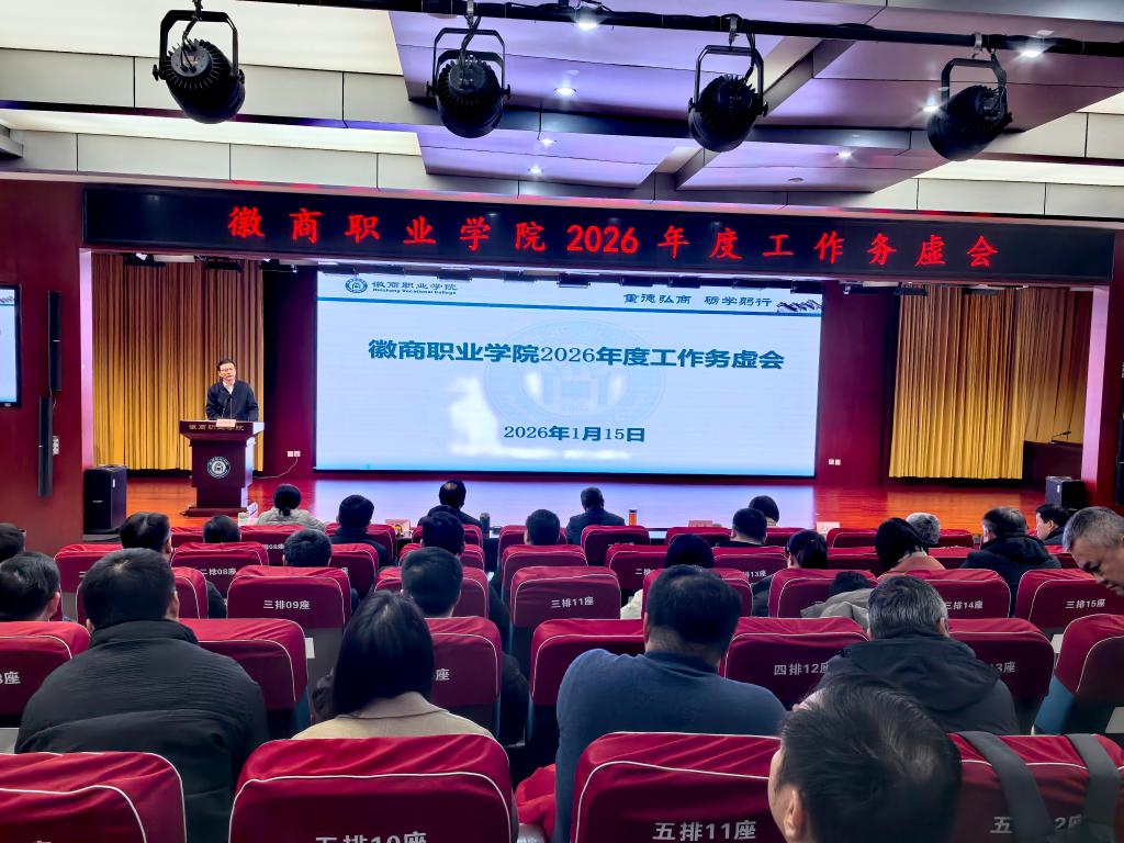 丁仁船在讲话中强调,学校需立足长远发展,从五个维度系统谋划推进2026年各项工作。一是提升办学能力。高质量编制“十五五”发展规划,明确未来五年发展方向;创新办学思路,探索多种渠道扩大办学规模,积极争取资金支持,持续改善办学条件;优化资源配置,调整校园空间布局。二是创新办学路径。积极推进职普融通,构建“3431”职普融通体系,着力建成 3 个专业学院、4 个中专分校和 3 个本科专业,同步设立 1 个专升本助学中心,服务学生多样化需求;深化产教融合,建立“1+1+1+N”结构体系,每个二级学院要致力打造1个专业群、1个产业学院、1个产教融合共同体和N个链上企业,推动教育与产业深度协同;推进科教融汇,成立安徽大学徽学研究中心徽商研究分中心,积极申报科学奖,不断提升学校科研创新能力。三是提高办学质量。认真谋划评估工作,补齐短板弱项,确保2027年全面达成办学各项评估指标;全力冲刺国家级成果,重点培育国家规划教材、国家教学成果奖,在国家级竞赛中实现提升;优化师资队伍建设,2026年将通过人才引进、公开招考、银龄教师聘任等多元途径充实师资力量。四是激发办学活力。持续优化考核激励机制,完善绩效管理办法;推进信息化建设,优化采购招标、财务审批等线上办理流程;推进职教出海,拓展海外教学点,输出更多特色教材和课程标准,持续选派优秀教师赴教学点授课工作。五是彰显办学特色。挖掘徽商文化育人内涵,聚焦“一个中心、三个课堂”,推进“五个一工程”建设,即编撰一本徽商精神教材、整理一本徽商故事集、营造浓厚徽商文化氛围、建设一个徽商场馆、凝练一套徽商精神谱系;凸显鲜明国资办学底色,推行“一院一国企”对接机制,推动各二级学院与至少一家省属企业建立深度合作,实现生产设备、骨干人才、实训场景、岗位标准、生产过程、真实项目进校园。